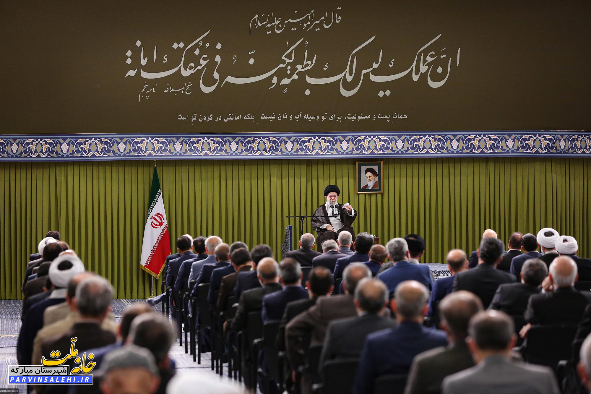 حضرت آیت الله خامنه‌ای سپس وارد موضوع مجلس شدند و با تأکید بر اینکه مجلس شورای اسلامی یکی از ارکان و اضلاع اصلی مدیریت کشور و دارای جایگاه مهمی است، خاطرنشان کردند: نمایندگان مجلس از شهرهای مختلف و حتی از شهرهای کم جمعیت نیز باید به جایگاه مجلس چنین دیدگاهی داشته باشند و متوجه سختی و پیچیدگی مدیریت کشور باشند.